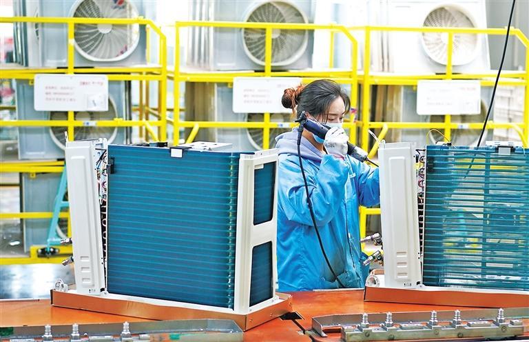 2022年家电行业承压前行,升级步伐加快。图为在格力电器(南京)有限公司,员工在生产车间忙碌。季春鹏摄(新华社发)