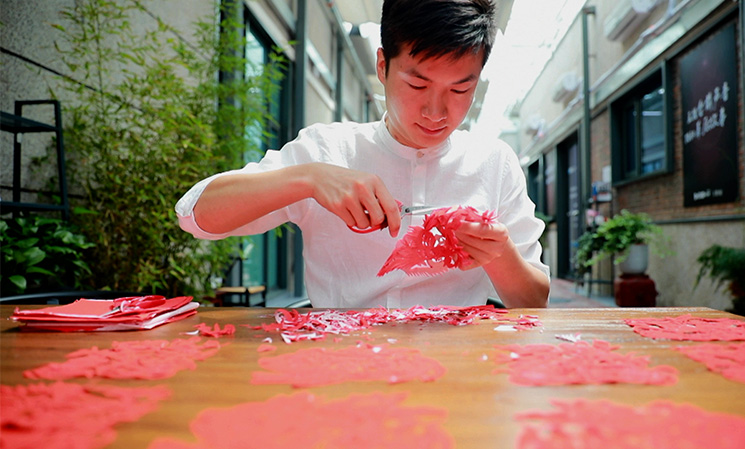 作為一個90后的剪紙傳承人,就要剪一些有新時代特點的剪紙作品。我擅長的是即興創作、脫稿剪紙,速度就是快。我們會了那些傳統的圖案之外,還要能夠看到任何的物體,或者別人給我一個命題就能即時創作。搞剪紙創作一定要豐富自己的知識面,這樣腦海中才會有更多的畫面跟場景。我感覺剪紙是讓我用紙和剪刀在對話,把我的情感通過紙釋放出來。其實是一種靜修,或者自我的享受。我以后要開展的工作,或許是要承擔著怎樣讓剪紙在00后、10后、20后這些年輕一代的未來人,怎么能認識我們這種傳統藝術,這是我一生要去做的事情。