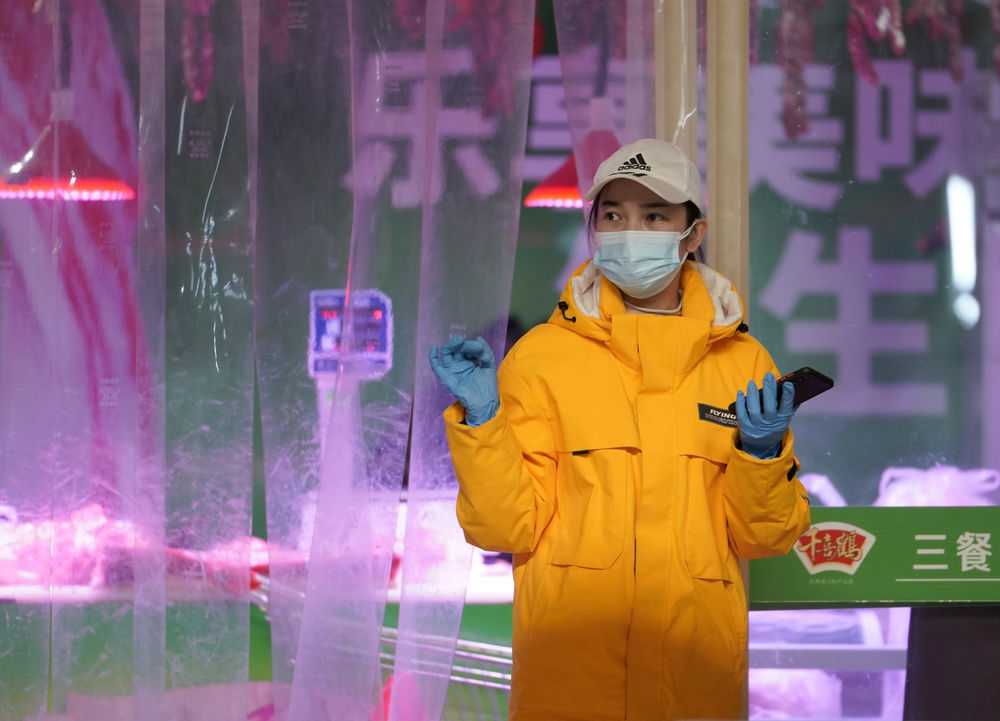↑1月11日,張琪琪在菜市場給鄰居們采購食物。