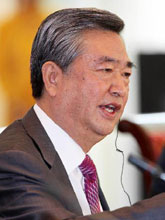 共同社社長兼總編輯石川聰在主席團(tuán)會(huì)議上發(fā)言