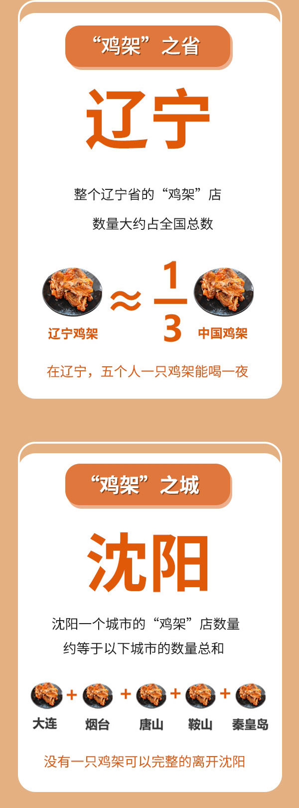 ????? 據(jù)高德地圖統(tǒng)計(jì),全國“雞架”店最多的城市非沈陽莫屬,青島、天津、北京等城市也位于榜單前列。