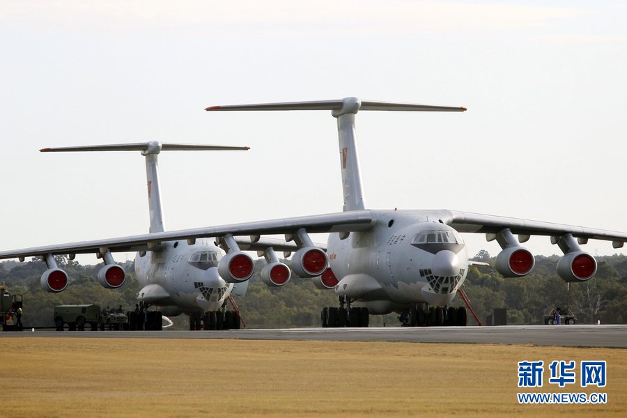 ??? 當地時間2014年3月22日,澳大利亞珀斯,中國空軍兩架伊爾76型運輸機轉場抵達珀斯皮爾斯空軍基地。中國空軍搜救行動總指揮劉殿軍稱,此次抵澳的兩架飛機共有機組人員38人,機上帶有先進的搜尋儀器和設備,完全具備能力參與搜索失聯馬航客機的工作。此次來澳的軍用飛機續航時間為6至8個小時。劉殿軍說,中方正在與澳方協調,希望明天就能開始搜尋工作。我們“希望盡早盡快”參加搜索行動。來源:CFP