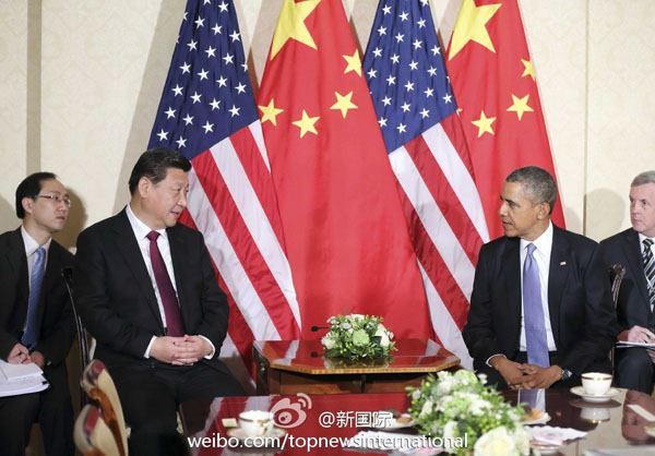 ????新華網北京3月25日電 據新華社“新國際”微博報道,國家主席習近平24日在會見美國總統奧巴馬時說,在東海、南海問題上,美方應該采取客觀公允態度,分清是非,多做有利于推動問題妥善解決和局勢緩和的事。