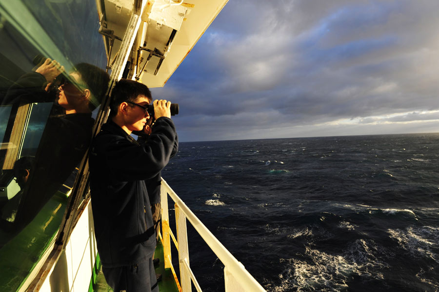 ????經中國海上搜救中心同意,“雪龍”號科考船28日下午全速趕往澳大利亞海事安全局最新調整的搜尋區,并將與“海巡01”會合,進行中方船只現場指揮聯絡工作的交接。根據國際調查團隊向澳方提出的建議,澳大利亞海事安全局28日調整了搜索部署,搜尋范圍發生較大改變。新華社記者張建松攝