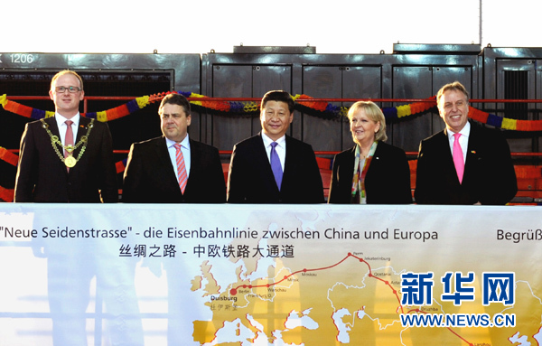 ????習近平表示,中方提出建設(shè)絲綢之路經(jīng)濟帶倡議,秉承共同發(fā)展、共同繁榮的理念,聯(lián)動亞歐兩大市場,賦予古絲綢之路新的時代內(nèi)涵,造福沿途各國人民。中德位于絲綢之路經(jīng)濟帶兩端,是亞歐兩大經(jīng)濟體和增長極,也是渝新歐鐵路的起點和終點。兩國應(yīng)該加強合作,推進絲綢之路經(jīng)濟帶建設(shè)。杜伊斯堡港是世界最大內(nèi)河港和歐洲重要交通物流樞紐,希望它能為促進中德、中歐合作發(fā)展發(fā)揮更大作用。