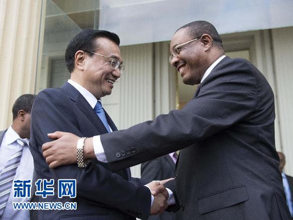 ? ?5月4日,中國國務院總理李克強在亞的斯亞貝巴與埃塞俄比亞總理海爾馬里亞姆舉行會談。這是共同會見記者后,李克強與海爾馬里亞姆握手。新華社記者 李學仁攝