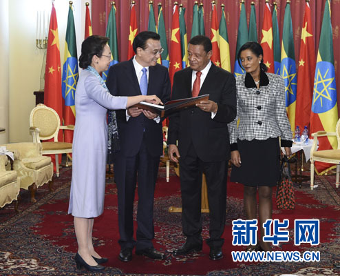 ??? 這是會(huì)見(jiàn)結(jié)束后,李克強(qiáng)總理向穆拉圖總統(tǒng)贈(zèng)送介紹北京大學(xué)的畫(huà)冊(cè)。穆拉圖總統(tǒng)年輕時(shí)曾在北京大學(xué)留學(xué)。 新華社記者李學(xué)仁攝