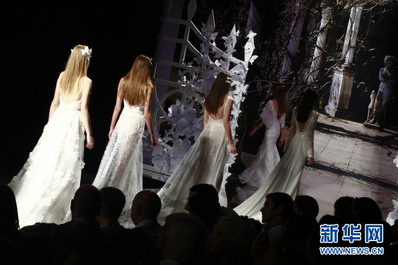模特在T臺(tái)上展示西班牙品牌Yolan Cris的婚紗。Yolan Cris品牌由Yolanda和Cristina姐妹聯(lián)手打造,同時(shí)這也是來(lái)自巴塞羅那當(dāng)?shù)氐囊粋€(gè)婚紗品牌。