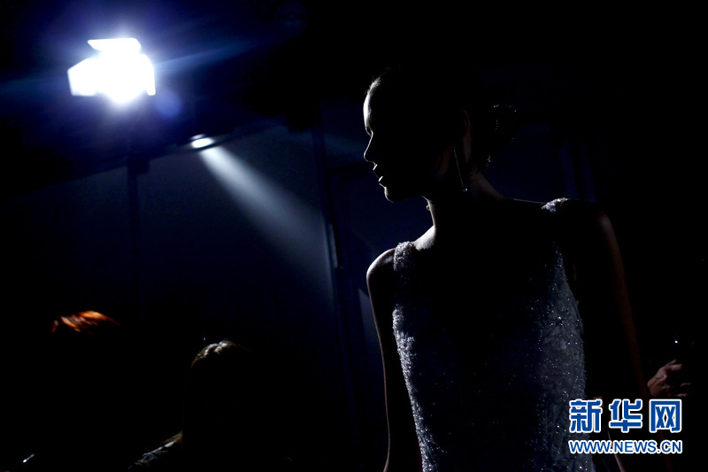 場外正在準備登臺展示婚紗的模特。