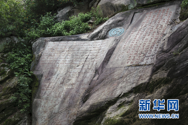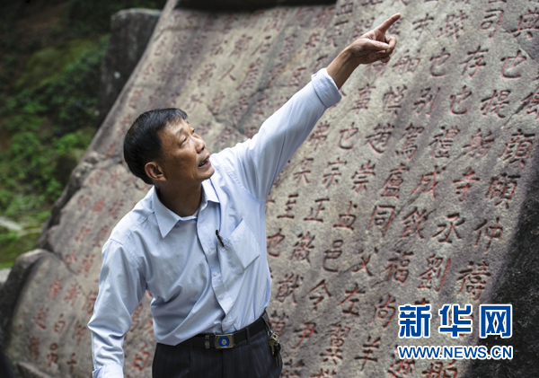 ??? 走進(jìn)那段記錄在石壁上的海絲歷史聯(lián)合國教科文組織“海絲”考察隊(duì)于1991年觀摩祈風(fēng)石刻,認(rèn)定此為宋元時期海上絲綢之路起點(diǎn)的文物佐證,并做中英文新刻(5月8日攝)。 26年來,今年65歲的文物管理所原所長胡家其老人已經(jīng)記不得多少次向人們講述九日山作為宋元時期海上絲綢之路起點(diǎn)的歷史,但他從不言倦。福建泉州豐州鎮(zhèn)九日山因“山中無石不刻字”而與眾不同。這座海拔只有一百多米的小山現(xiàn)存古代摩崖石刻77方,其中宋代石刻61方。這61方石刻中又有10方直接與海上絲綢之路有關(guān),記錄了公元1174年至1266年期間11次官辦祈風(fēng)儀式。新華社記者 姜克紅 攝