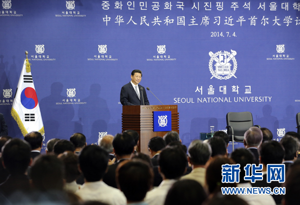 ???? 7月4日,國家主席習近平在韓國國立首爾大學發表題為《共創中韓合作未來 同襄亞洲振興繁榮》的重要演講。 新華社記者 蘭紅光 攝