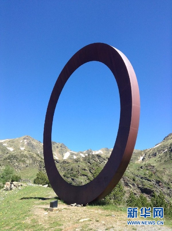 ????安道爾境內山路邊上的一個雕塑,根據旁邊的說明,這個圓環象征著“永恒與寧靜”。(周喆 攝)