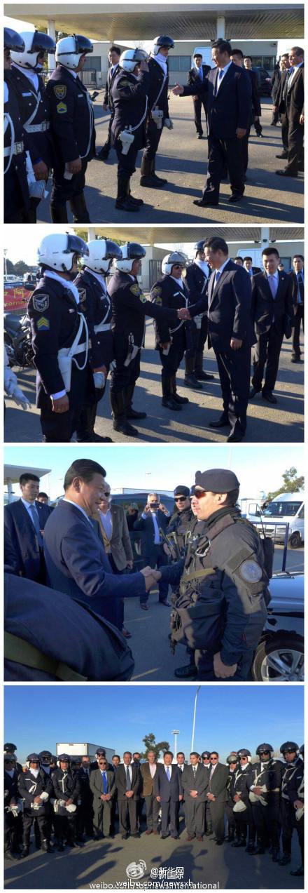 習近平和阿根廷騎警一一握手表示感謝