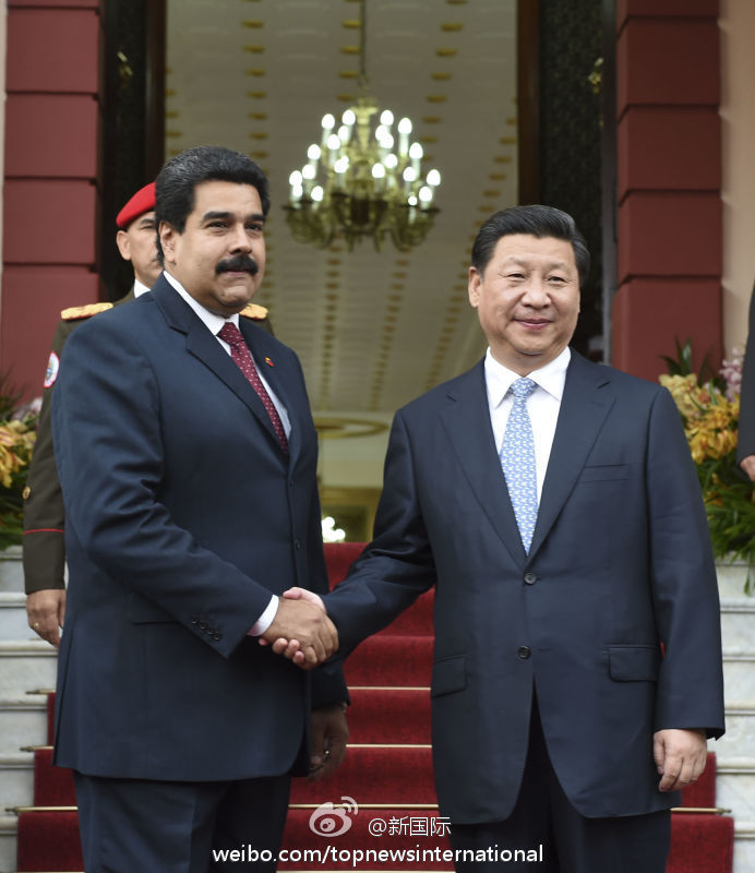 ??? 【習近平明確中委合作“引擎、主軸和輪子”】習近平20日同馬杜羅總統會談時說,我們要加強頂層設計,以金融和投資為引擎,以能源合作為主軸,基礎設施建設、農業、礦業、科技合作等多個輪子一起轉,促進中委合作全方位發展。(李學仁攝)