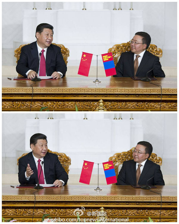 ????新華網(wǎng)北京8月21日電 據(jù)新華社“新國(guó)際”微博報(bào)道,習(xí)近平主席21日同蒙古國(guó)總統(tǒng)額勒貝格道爾吉會(huì)見(jiàn)記者時(shí)說(shuō),為將中蒙全面戰(zhàn)略伙伴關(guān)系落到實(shí)處,中蒙兩國(guó)將全面擴(kuò)大經(jīng)貿(mào)務(wù)實(shí)合作,爭(zhēng)取到2020年實(shí)現(xiàn)雙邊貿(mào)易額100億美元的目標(biāo),同時(shí)要把互聯(lián)互通和大項(xiàng)目合作作為兩國(guó)合作的優(yōu)先方向。