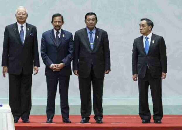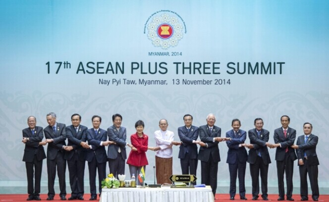 (11月13日,出席10+3會議的領(lǐng)導人合影,中間空出一個位子。)