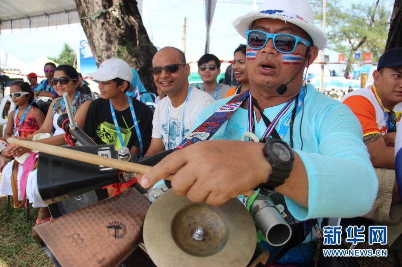 ??? 11月16日,泰國民眾為泰國運動健兒加油。中國體育代表團16日在泰國普吉舉行的第四屆亞洲沙灘運動會上勇奪2枚金牌和2枚銅牌。當天比賽全部結束時,中國隊以3金2銀5銅的成績暫列獎牌榜第五,東道主泰國隊以9金11銀12銅的成績暫列金牌榜和獎牌榜第一。新華社發(塔納攝)