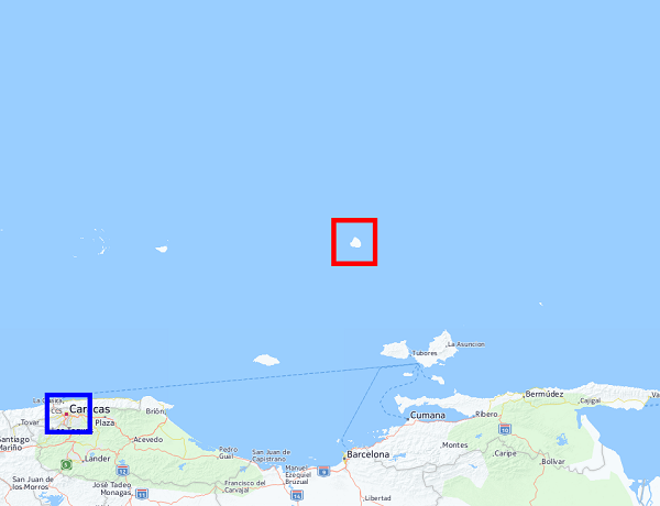 ????紅框里就是布蘭基亞(Isla La Blanquilla),藍(lán)框里是委內(nèi)瑞拉首都加拉加斯。夠遠(yuǎn)的吧?小島距離加拉加斯182公里,是著名的潛水勝地。島上覆蓋有白色沙灘,島名中的Blanquilla即來(lái)自此沙灘。岸上雖然沙灘一片雪白,但是海中卻滿布黑珊瑚。小島面積64.53平方公里,上面有仙人掌、鬣蜥、野驢和山羊。
