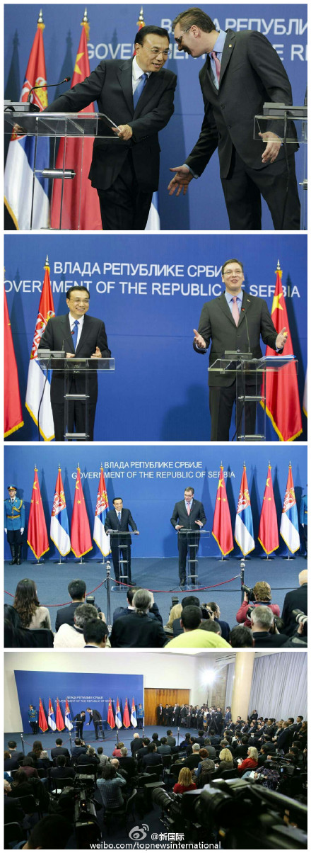????新華網(wǎng)北京12月18日電,據(jù)新華社“新國際”微博報(bào)道,當(dāng)?shù)貢r(shí)間17日下午,李克強(qiáng)總理與塞爾維亞總理武契奇共同會(huì)見記者。他說,中方愿與塞方筑牢政治互信基石,挖掘務(wù)實(shí)合作潛力,深耕人文交流土壤,推動(dòng)中塞戰(zhàn)略伙伴關(guān)系發(fā)展。中塞友誼有著良好傳統(tǒng),而且歷久彌新,就像當(dāng)?shù)氐腖oza酒一樣,經(jīng)年陳釀、愈發(fā)醇香。?