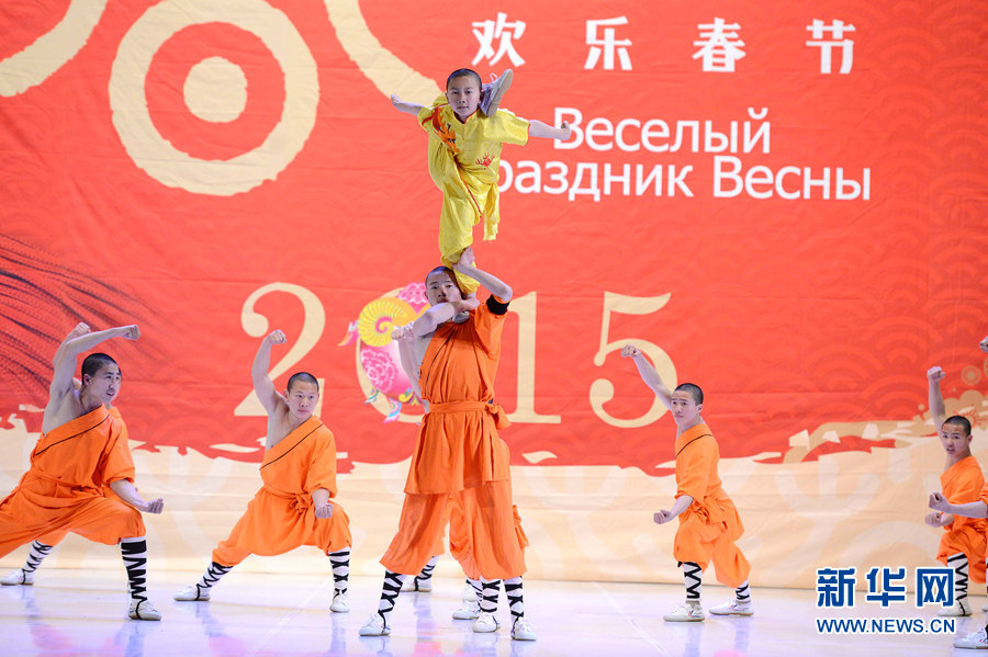 2月4日晚,在烏茲別克斯坦首都塔什干突厥宮,藝術家在表演中國武術和舞蹈。新華網記者 沙達提 攝