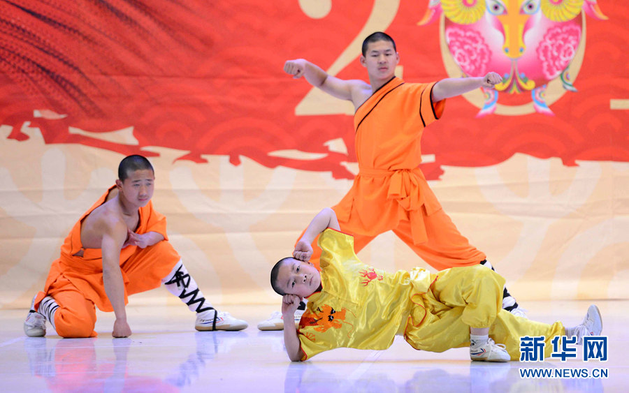 2月4日晚,在烏茲別克斯坦首都塔什干突厥宮,藝術家在表演中國武術和舞蹈。新華網記者 沙達提 攝