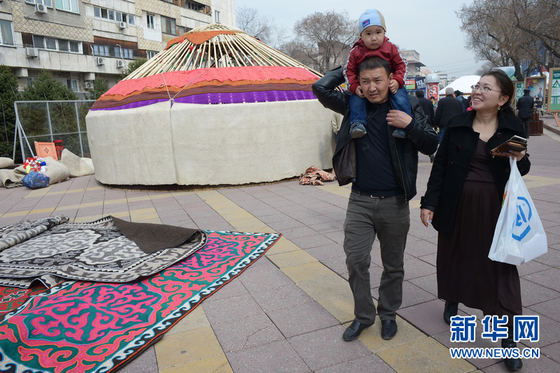 ????4月4日、5日,在阿拉木圖舉辦首界氈房節。穿著民族服裝的民間藝人搭起具有悠久傳統的哈薩克氈房。氈房上部為穹形,下部為圓柱形,四壁有網狀的木桿搭成整個氈房的骨架,外包白氈。氈房里四周是掛毯,地上是花氈地毯,上面刺著各種圖案,令人賞心悅目。哈薩克斯坦舉辦這次活動是為了將哈薩克氈房列入世界非物質文化遺產名錄。(文/盧敬利 圖/葉蓮娜)