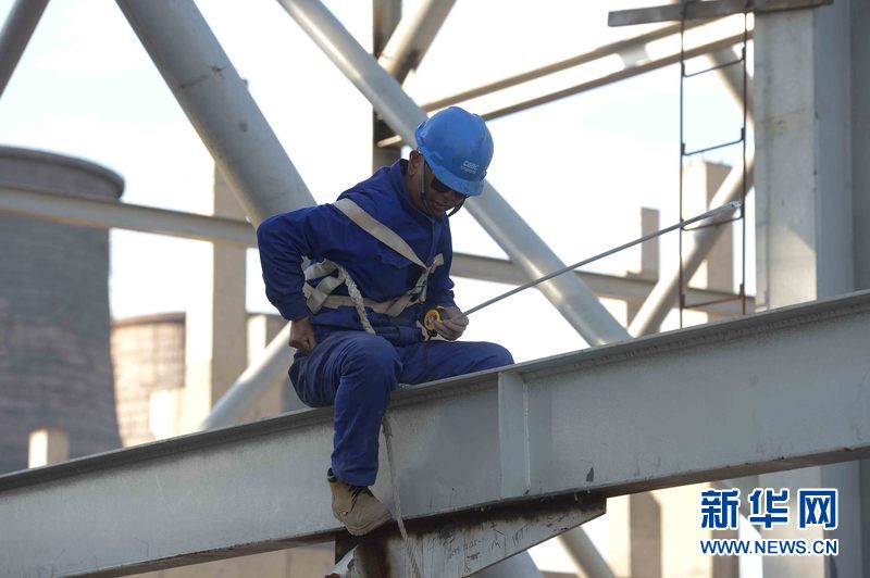 烏茲別克斯坦安格連(市)電廠主廠房鋼結(jié)構(gòu)施工現(xiàn)場(chǎng)。新華網(wǎng)發(fā) 記者沙達(dá)提 攝