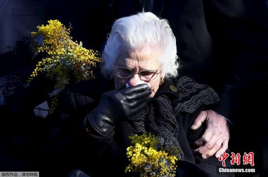 圖為一名遇難者的家屬在揭幕儀式現場,為逝去的親人獻花。