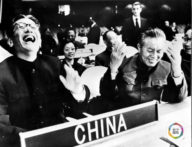 圖為第26屆聯大會上的中國代表席,左一為中華人民共和國外交部時任副部長喬冠華,右一為時任中國常駐聯合國代表黃華(資料照片)