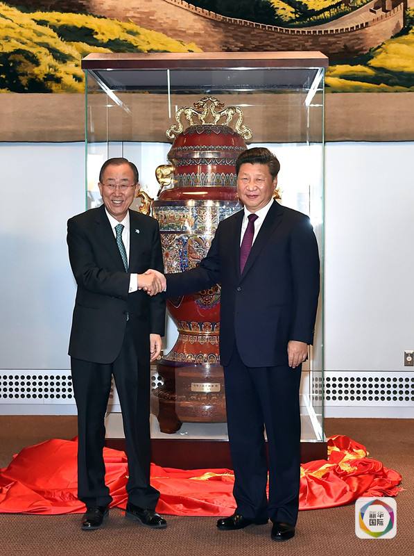 習近平出席中國向聯合國贈送“和平尊”儀式。新華社記者李濤攝