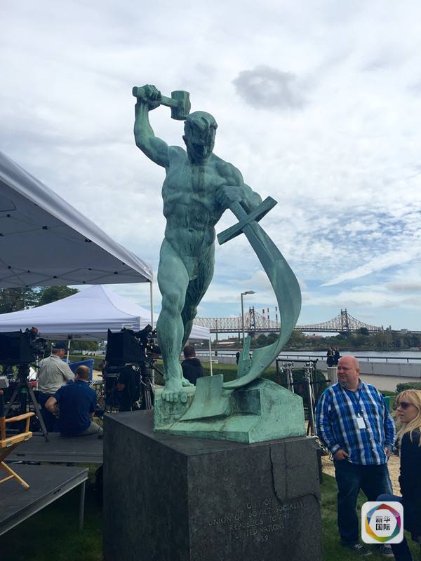 蘇聯贈送的雕塑“鑄劍為犁”。