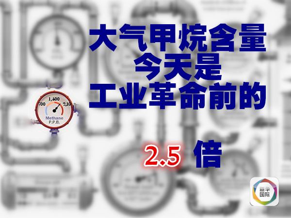 美國國家海洋和大氣管理局統計,2014年大氣中甲烷的含量是工業革命前的2.5倍強。