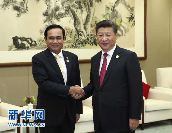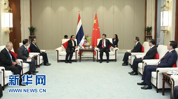 習(xí)近平指出,中泰一家親。中方高度重視發(fā)展中泰友好關(guān)系,愿同泰方一道,推動兩國全面戰(zhàn)略合作不斷邁上新臺階。中泰都是亞洲重要的發(fā)展中國家,都面臨著發(fā)展經(jīng)濟、改善民生、維護(hù)穩(wěn)定的重要任務(wù)。中泰雙方要加強戰(zhàn)略溝通,加強發(fā)展戰(zhàn)略對接,大力推進(jìn)兩國各領(lǐng)域互利合作,擴大人員往來,加強在多邊框架內(nèi)的協(xié)調(diào)和配合。巴育總理以七十七國集團(tuán)輪值主席國領(lǐng)導(dǎo)人身份出席二十國集團(tuán)領(lǐng)導(dǎo)人杭州峰會,體現(xiàn)了廣大發(fā)展中國家對中國主辦峰會的支持。中方期待同泰方一道努力,推動峰會取得成功。