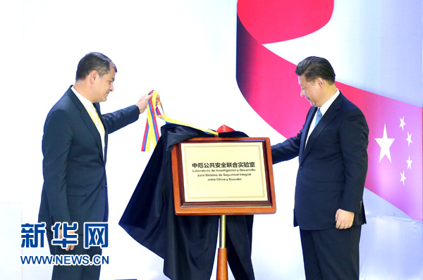 新華社基多11月18日電(記者王聰 霍小光)國家主席習近平18日在基多同厄瓜多爾總統科雷亞共同出席中方援建的厄瓜多爾公共安全應急指揮中心聯合實驗室揭牌儀式,喬內醫院奠基、科卡科多-辛克雷水電站竣工發電視頻連線活動。
