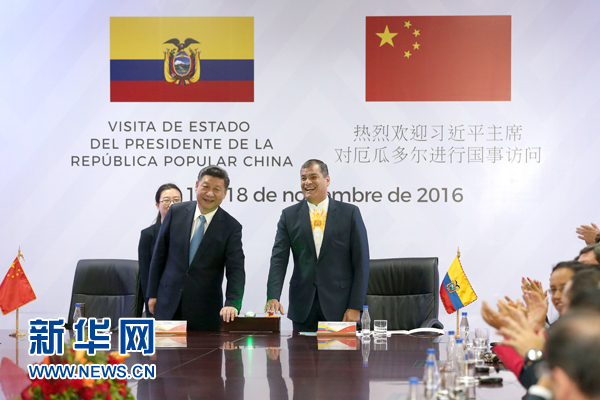 習近平同厄瓜多爾總統科雷亞共同出席中厄合作項目揭牌儀式和視頻連線活動