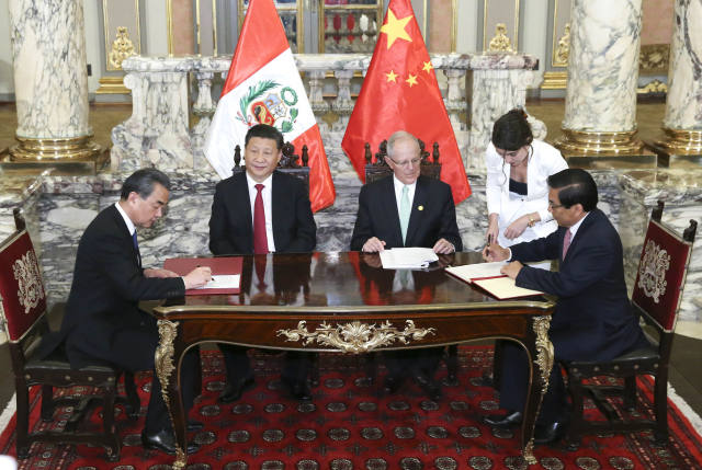 11月21日,國家主席習近平在利馬同秘魯總統庫琴斯基舉行會談。會談后,兩國元首見證《中華人民共和國政府與秘魯共和國政府2016年至2021年共同行動計劃》等文件的簽署。(新華社記者 龐興雷 攝)