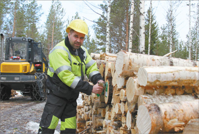 從芬蘭首都赫爾辛基驅(qū)車往北一個(gè)多小時(shí),我們的四輪驅(qū)動(dòng)汽車駛上一條小路。路上積雪越來越多,兩旁的森林也越來越密。循著轟鳴聲,我們看到一臺伐木機(jī)正在作業(yè):一只碩大的機(jī)械手攥住云杉的底部,量直徑、切樹樁、去雜枝、測長度、斷木頭,幾秒鐘的工夫,一氣呵成。