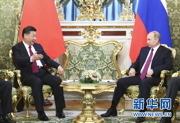 習近平指出,中俄兩國是山水相連的好鄰居、守望相助的好朋友、精誠協作的好伙伴。中俄全面戰略協作伙伴關系符合兩國和兩國人民根本利益,具有強大生命力和巨大發展潛力,經得起國際風云變幻考驗。中俄關系持續健康穩定發展,有利于維護兩國安全穩定,有利于中俄各自發展振興,也有利于世界和平、穩定、繁榮。