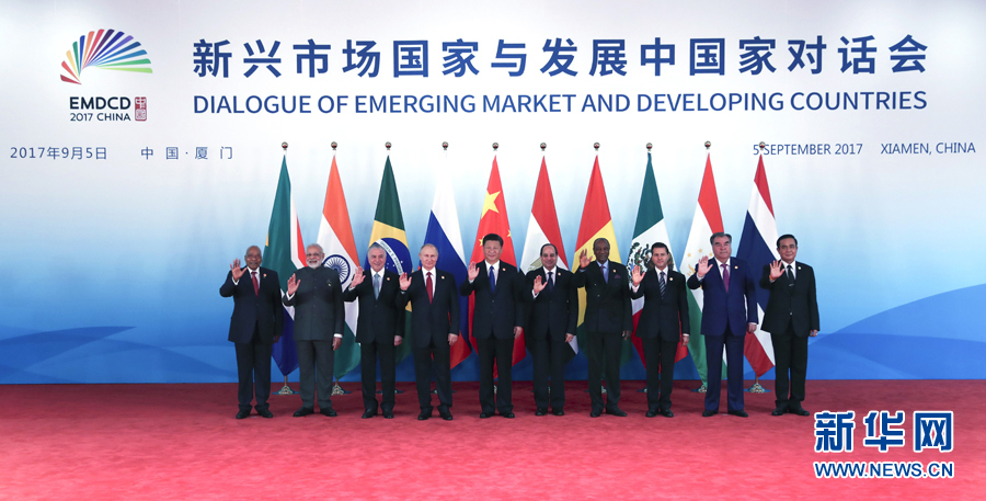 2017年9月3日至5日,福建廈門,習近平主席出席并主持金磚國家領導人第九次會晤和新興市場國家與發(fā)展中國家對話會,出席金磚國家工商論壇開幕式。