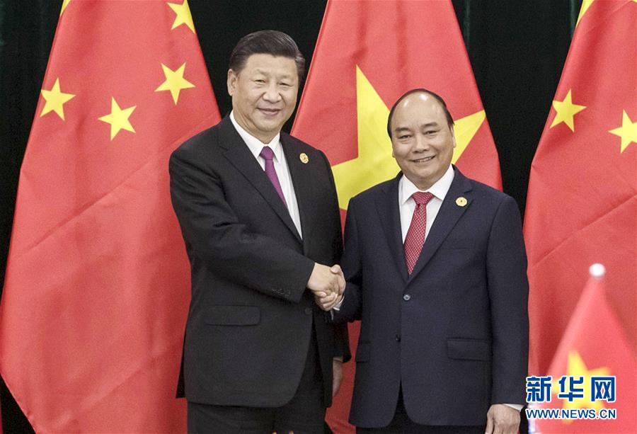 11月11日,中共中央總書記、國家主席習近平在峴港行政中心會見越南總理阮春福。 新華社記者 王曄 攝