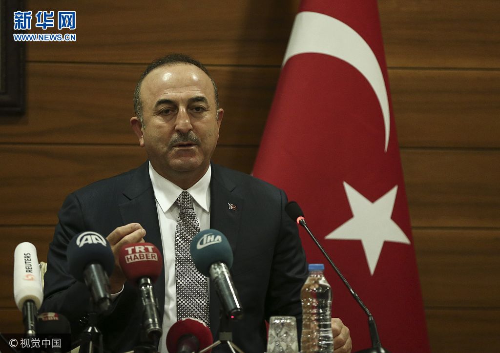 當地時間2017年12月20日,土耳其伊斯坦布爾,土耳其外長恰武什奧盧出席新聞發布會,呼吁聯合國大會在21日舉行的緊急會議上認定美國承認耶路撒冷為以色列首都的決定“無效”。(圖片來源:視覺中國)