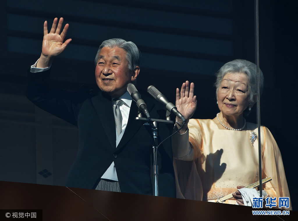 當(dāng)?shù)貢r(shí)間2017年12月23日,日本東京,日本明仁天皇慶祝84歲生日,在皇宮的陽臺上向祝福者揮手致意。(圖片來源:視覺中國)