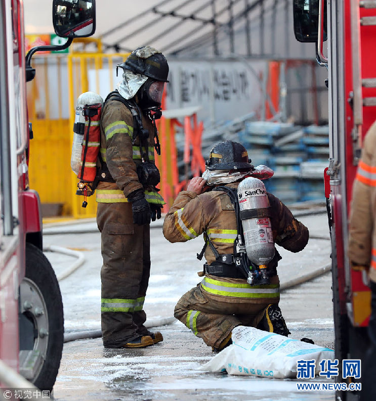 韓國水原市建筑工地發生火災 現場濃煙滾滾