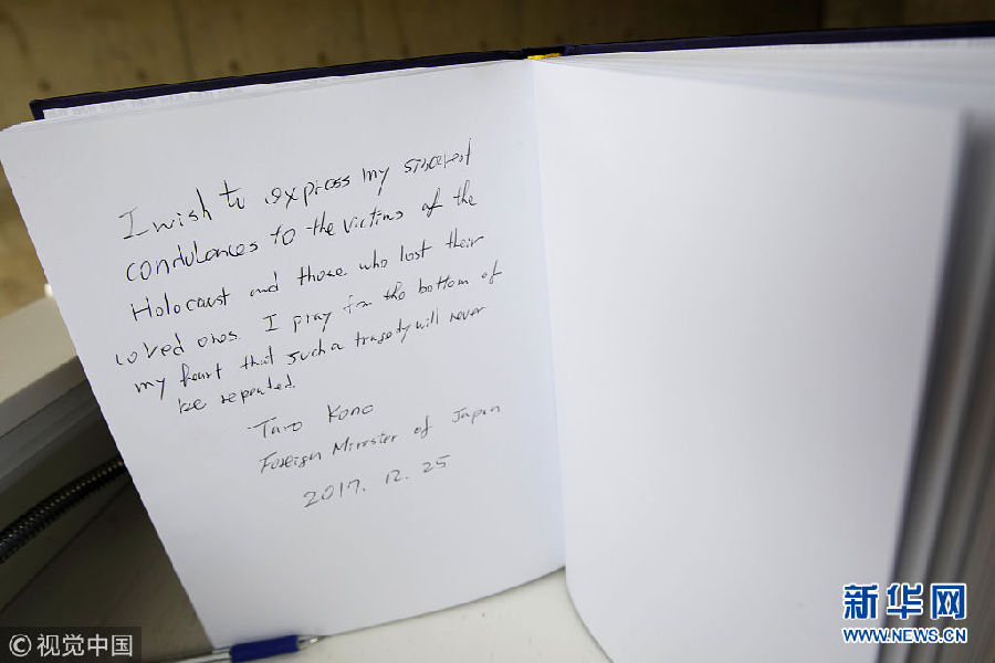 12月25日,耶路撒冷,日本外相河野太郎訪問(wèn)耶路撒冷,參觀大屠殺紀(jì)念館,獻(xiàn)花悼念死難者。 (圖片來(lái)源:視覺(jué)中國(guó))
