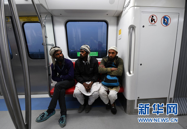 12月25日,在印度首都新德里洋紅色地鐵線,三名男子在乘車。當(dāng)日,連接新德里及其衛(wèi)星城諾伊達(dá)(Noida)之間的洋紅色地鐵線建成通車。這條線路全長12.64公里。德里地鐵公司計(jì)劃未來提高這條地鐵線路自動(dòng)化水平,以“無人值守模式”運(yùn)行。目前,新德里運(yùn)營地鐵線路共有7條,分別用顏色命名,包括紅色、黃色、藍(lán)色、綠色、橙色、紫羅蘭和洋紅色。新華網(wǎng)發(fā) (張迺杰 攝)