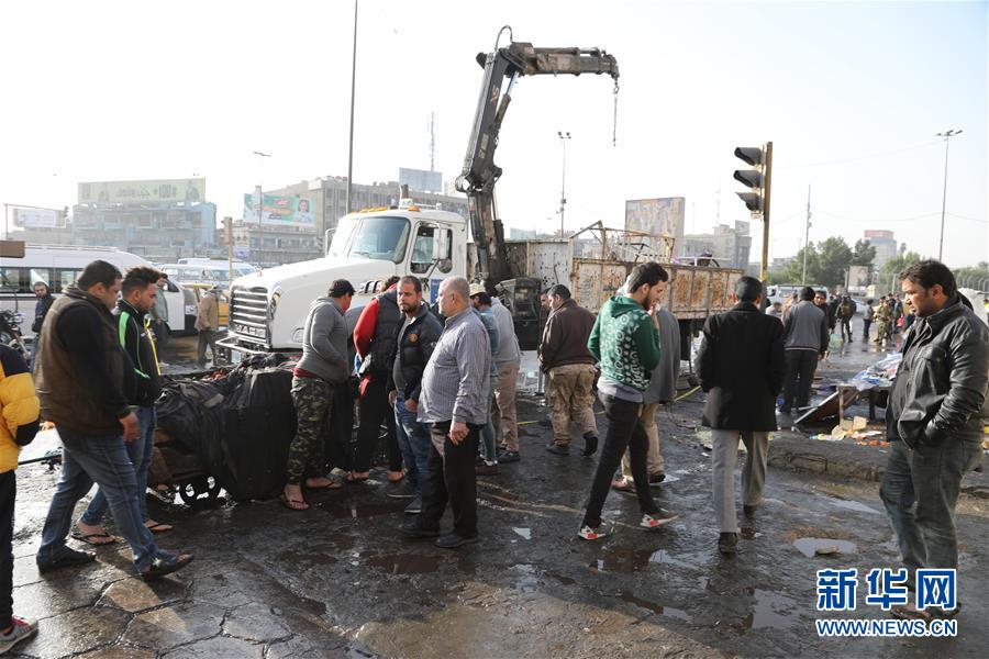 1月15日,在伊拉克首都巴格達,人們聚集在爆炸現場附近。伊拉克安全部門15日說,首都巴格達當天上午發生兩起炸彈襲擊事件,已造成16人喪生、67人受傷。 新華社發(哈利勒·達伍德攝)