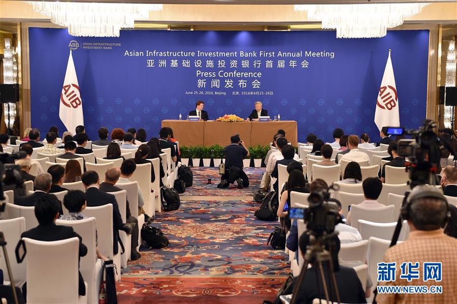 亞洲基礎設施投資銀行首屆年會在北京舉行新聞發布會(2016年6月25日攝)。新華社記者 李鑫 攝