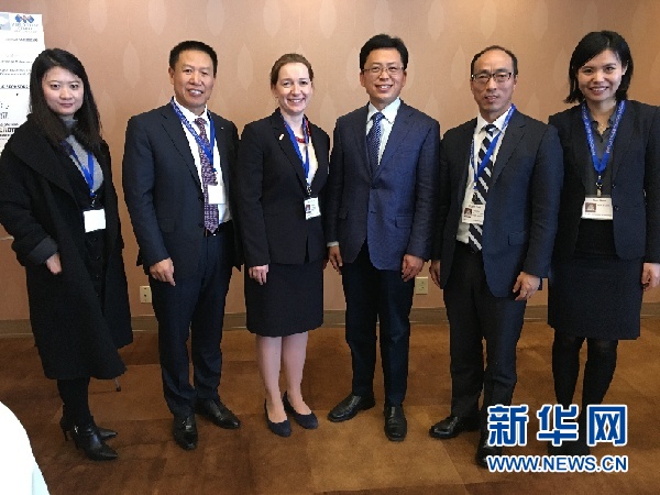 中國駐舊金山副總領事任發強(右三)等與會代表合影。新華網發