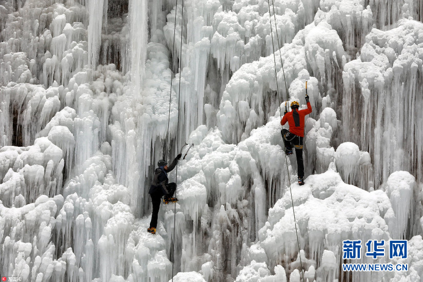 當?shù)貢r間1月26日,伊朗Meygun,攀巖愛好者在Meygun冰上攀巖俱樂部挑戰(zhàn)冰瀑攀巖。據(jù)悉,Meygun冰上攀巖俱樂部每年都會迎來數(shù)千專業(yè)攀巖人士以及學生。(圖片來源:東方IC)
