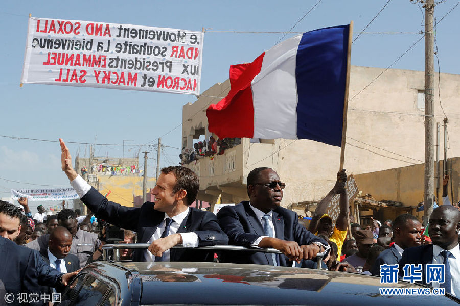 法總統(tǒng)馬克龍訪問塞內(nèi)加爾受眾人簇擁